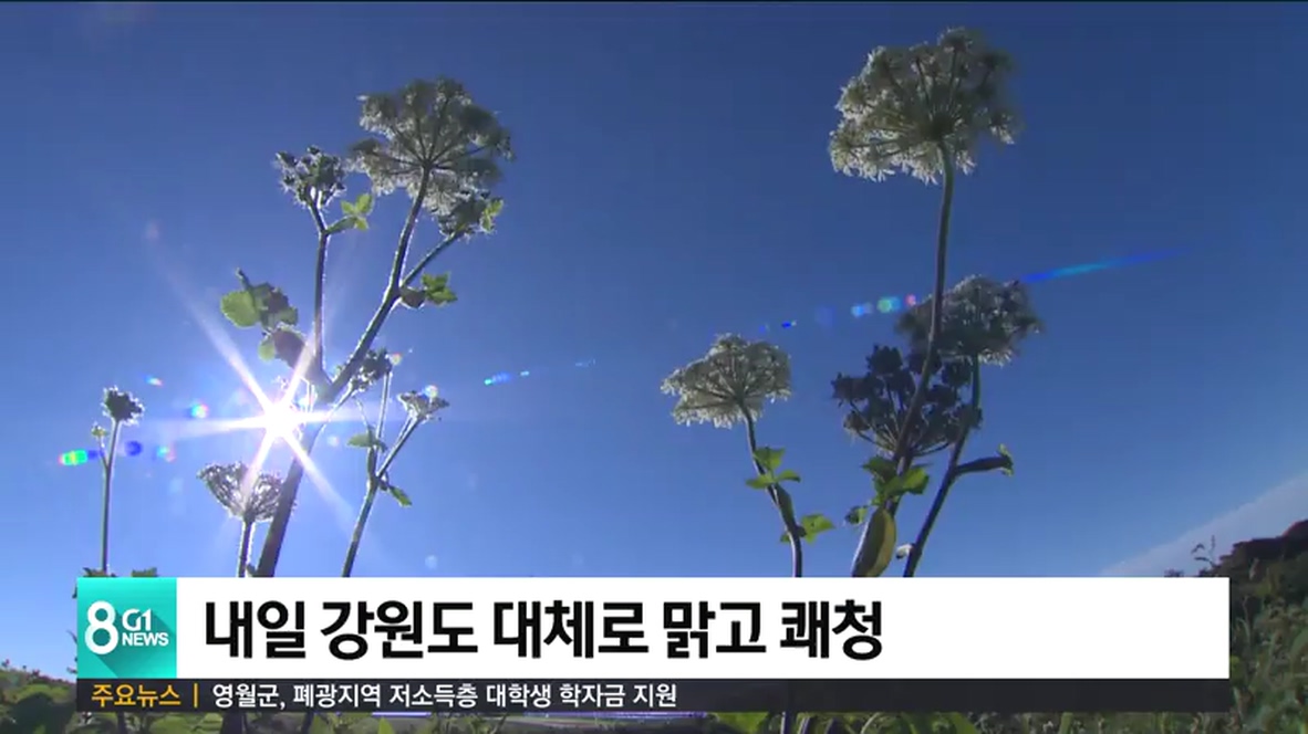 내일 강원도는 대체로 맑고 쾌청한 날씨가 이어지겠습니다.