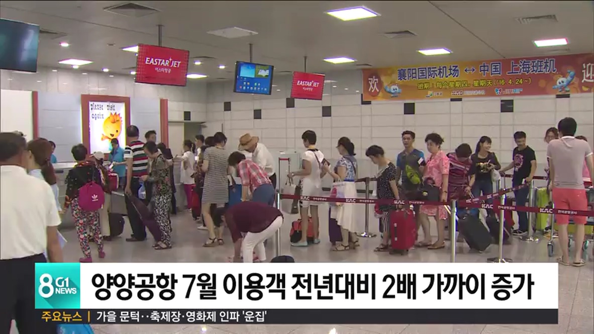 여름 휴가철 양양국제공항 여객 이용자수가 지난해 같은 기간에 비해 2배 가까이 증가했습니다.