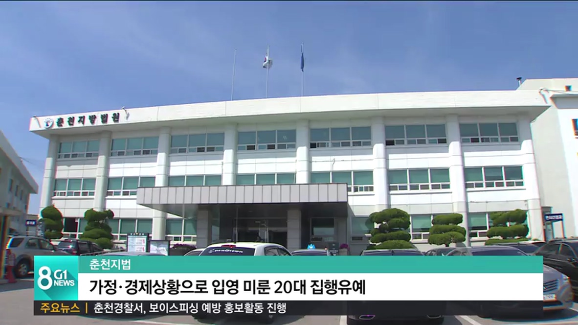춘천지법은 지난 4월 7일까지, 육군 모 부대로 입영하라는 통지서를 받은 뒤 정당한 사유없이 입영하지 않은 혐의로 기소된 24살 A씨에 대해 징역 1년에 집행유예 2년을 선고했다고 밝혔습니다.