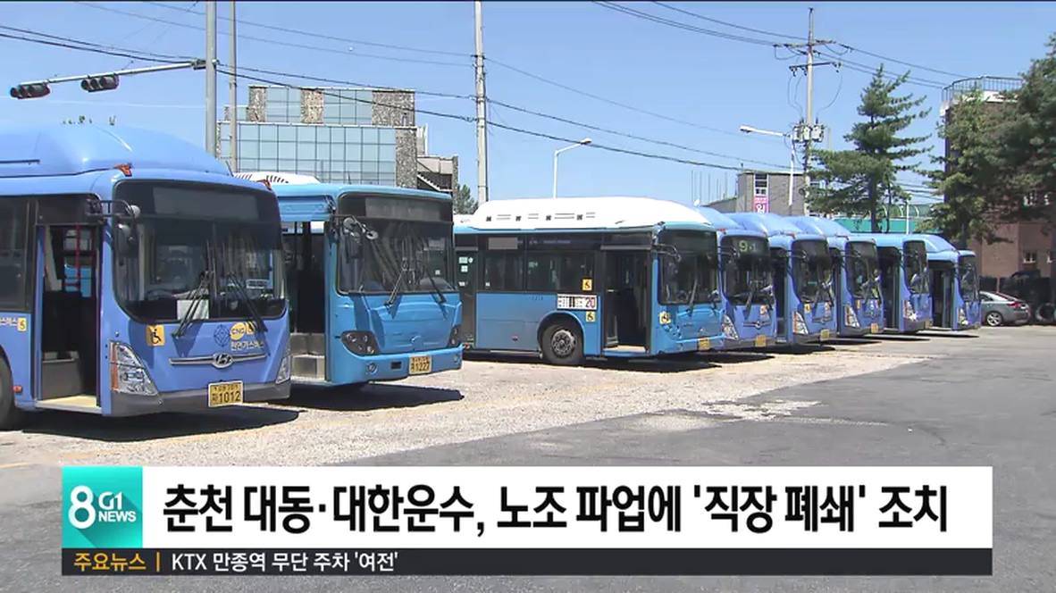 춘천지역 유일의 시내버스 업체인 대동.대한운수 사측이 노동조합의 파업에 맞서, 직장폐쇄라는 초강수 조치를 내렸습니다.