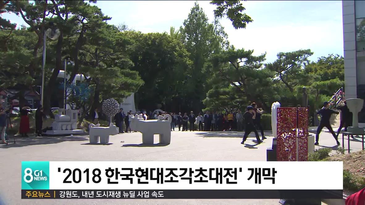 '2018 한국현대조각초대전'이 오늘 춘천MBC 호반광장에서 개막했습니다.