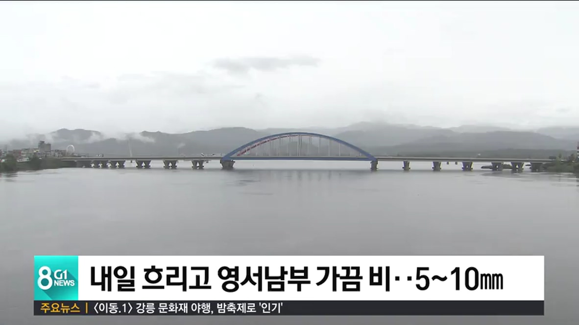 내일 강원도는 대체로 흐리고 영서남부지역에는 가끔 비가 내리겠습니다.