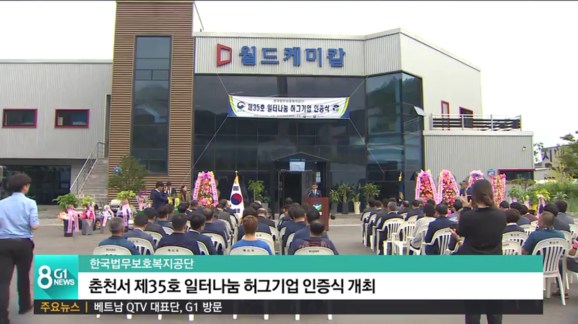 전국에서 35번째, 도내에선 4번째로 허그기업으로 선정된 월드케미칼은 현재까지 9명의 출소자를 직접고용하는 등 출소자 재범방지와 사회 안정에 기여한 공로를 인정받아 인증기업으로 선발됐습니다.
