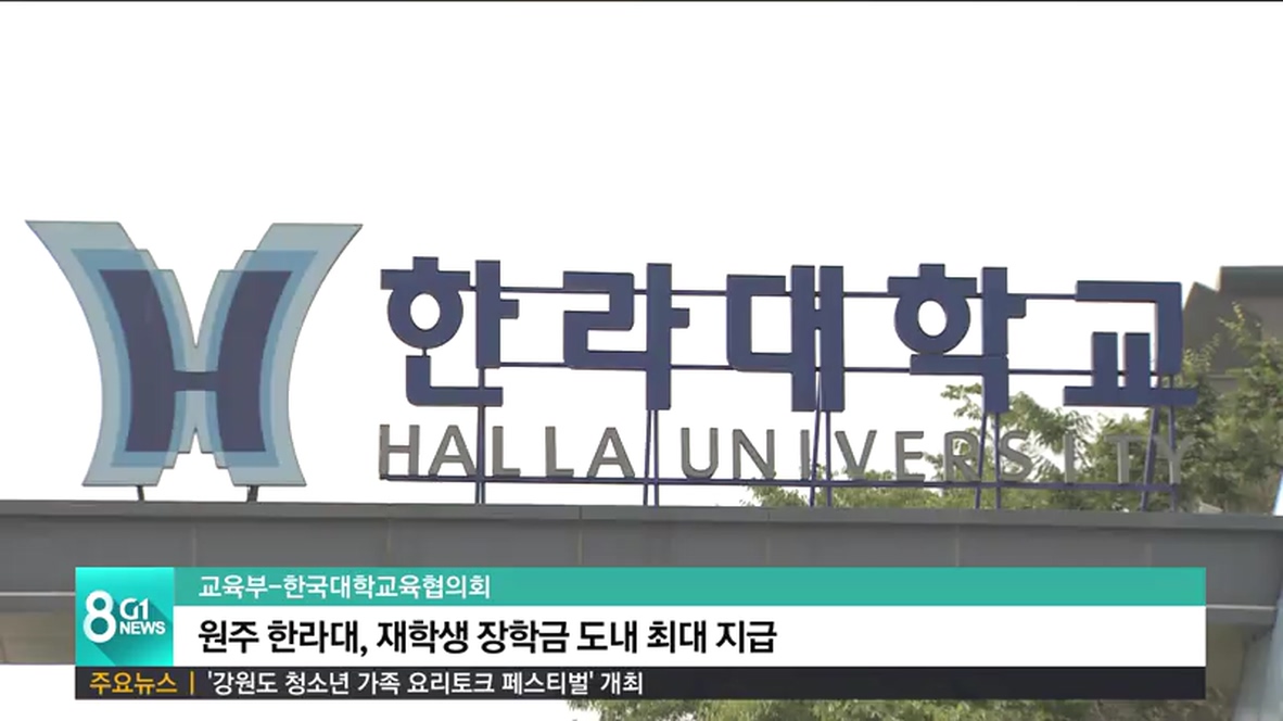 교육부와 한국대학교육협의회가 발표한 대학정보공시 결과에 따르면, 한라대의 학비감면장학금은 재학생 1인당 88만 원, 국가장학금은 227만 5천 원으로 도내에서 가장 많았습니다.