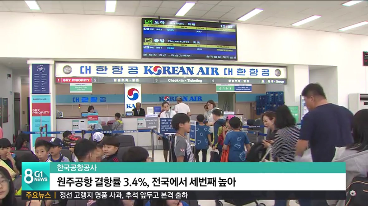 한국공항공사에 따르면, 올들어 지난 7월까지 원주공항에서 운항한 410편의 항공기 가운데 3.5%인 14편이 결항한 것으로 나타났습니다.