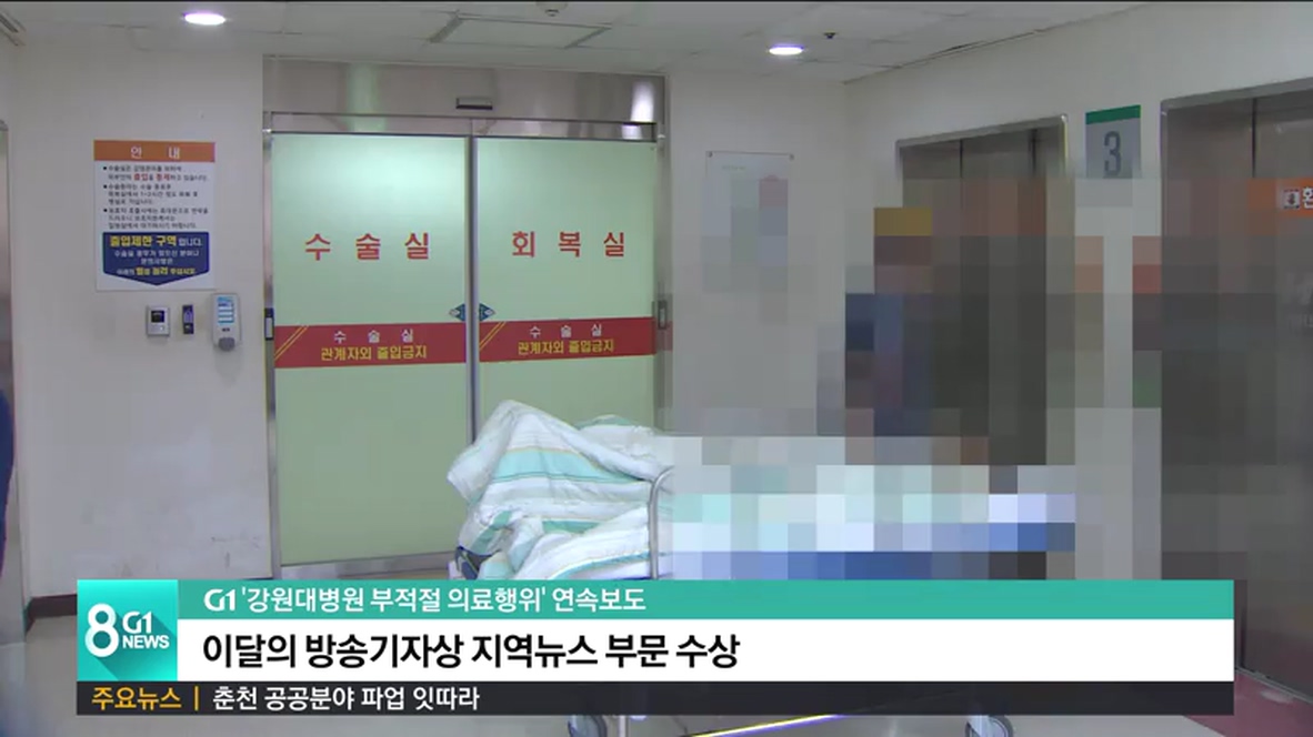 G1 강원민방이 심층 취재한 '강원대병원 수술실의 부적절 의료행위' 연속 보도가 제119회 이달의 방송기자상 지역뉴스 부문 수상작에 선정됐습니다.