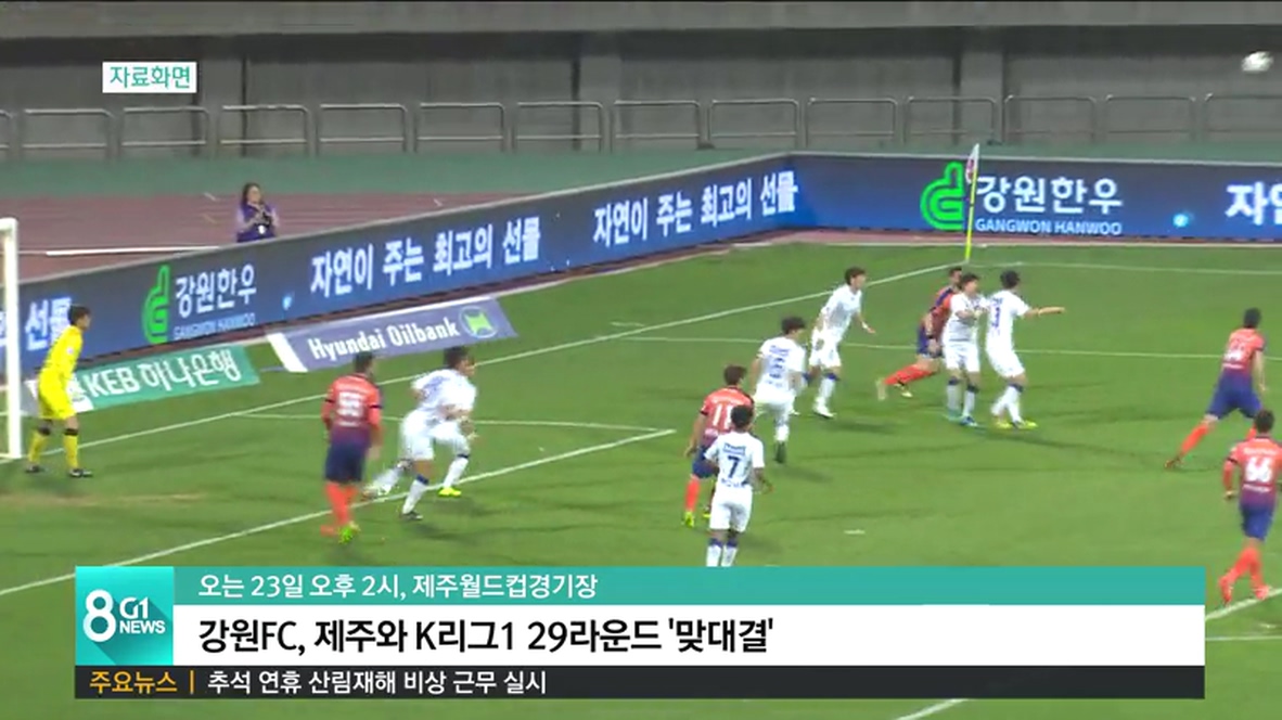 강원FC가 오는 23일 제주월드컵경기장에서 제주 유나이티드와 KEB하나은행 K리그원 29라운드 경기를 펼칩니다.