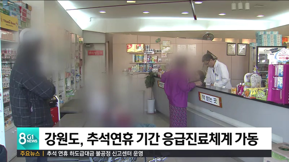 강원도는 연휴기간 중 응급진료에 병의원 천2백88곳, 휴일지킴이 약국 천2백12 곳이 참여해 2천5백곳이 운영될 예정이라고 밝혔습니다.