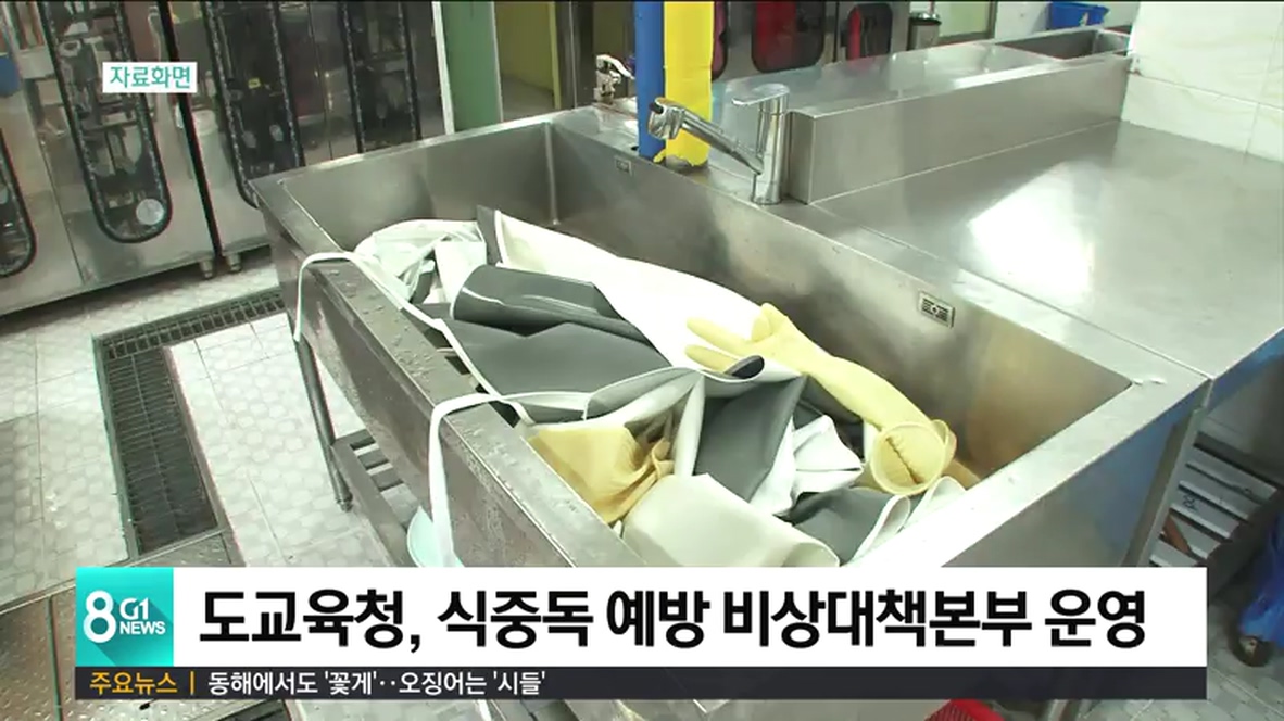 도교육청은 전국적으로 식중독 의심 신고가 증가하고 있어 대책본부를 가동하고, 지역 교육청과 함께 도내 조리실 설치 학교 547곳을 실시간 모니터링 할 계획이라고 밝혔습니다.