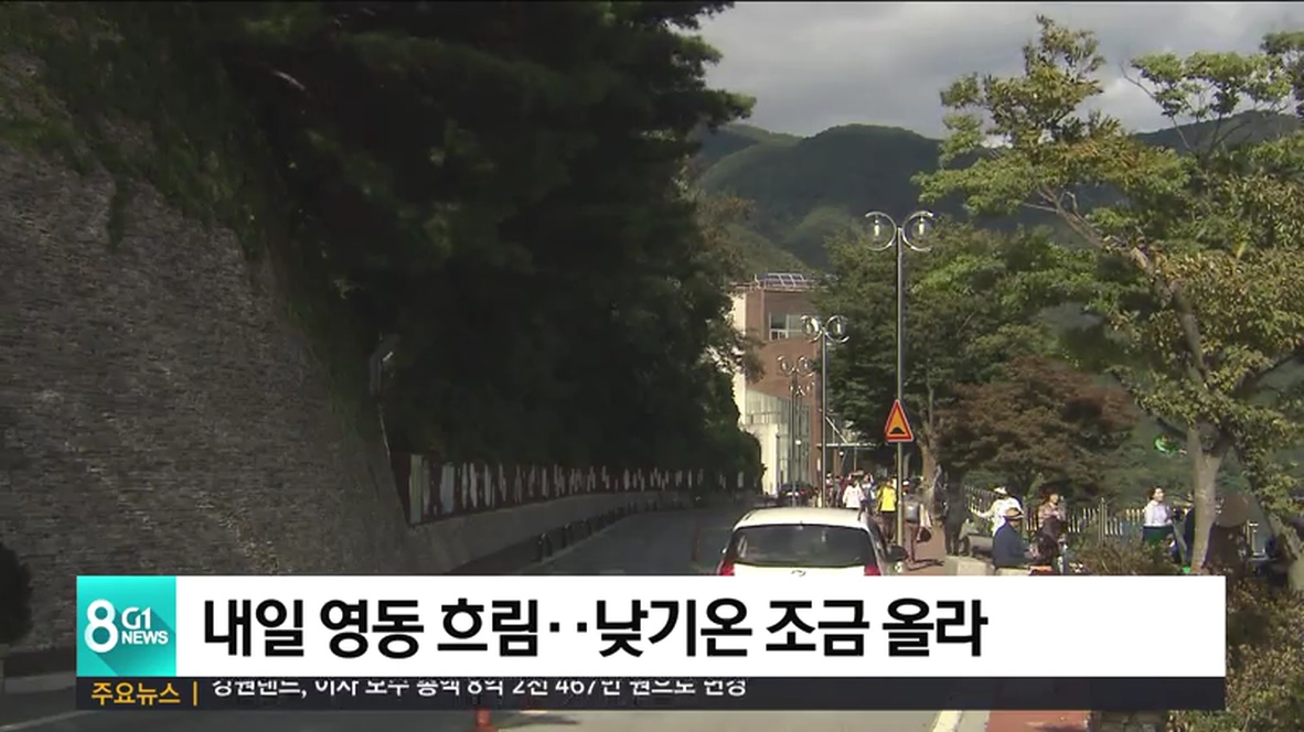 내일 강원 영서지역은 구름이 많다가 낮부터 차차 맑아지겠고, 영동지역은 대체로 흐리겠습니다.