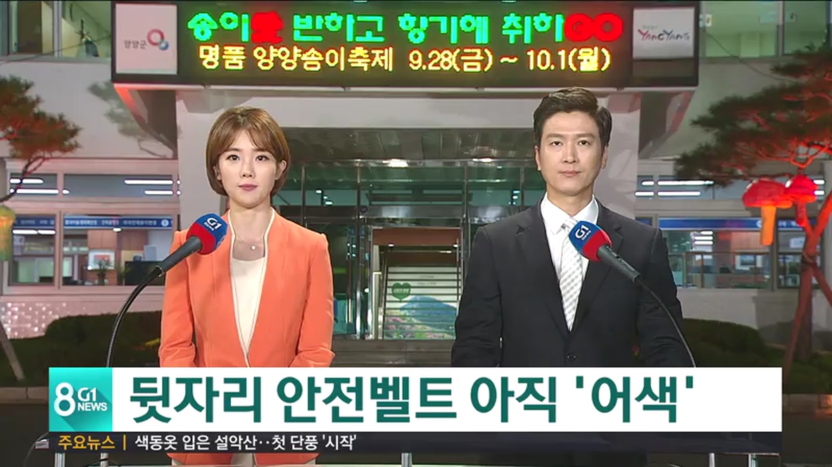 남) 오늘부터는 자동차 뒷좌석도 안전벨트 착용이 의무화됩니다.