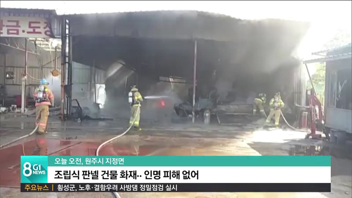 원주에서 조립식 판넬 건물 화재..인명 피해 없음