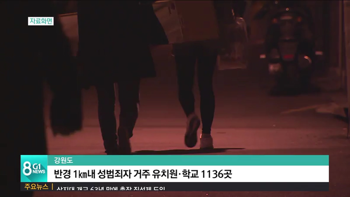 강원도에서 반경 1km 이내 성범죄자가 거주하는 어린이집과 유치원, 초,중.고교가 천 곳이 넘는 것으로 나타났습니다.