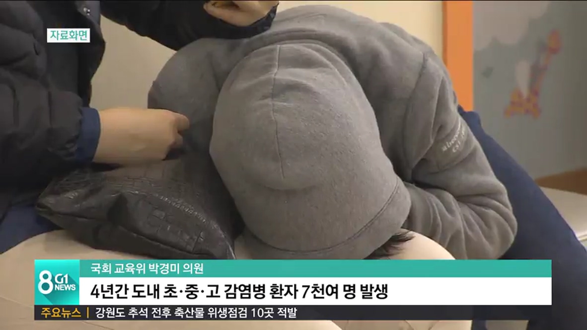 국회 교육위원회 박경미 의원이 제공한 학생 법정감염병 발생 현황에 따르면 지난 4년간 도내 772개 학교, 7천53명이 법정 감염병에 걸린 것으로 나타났습니다.