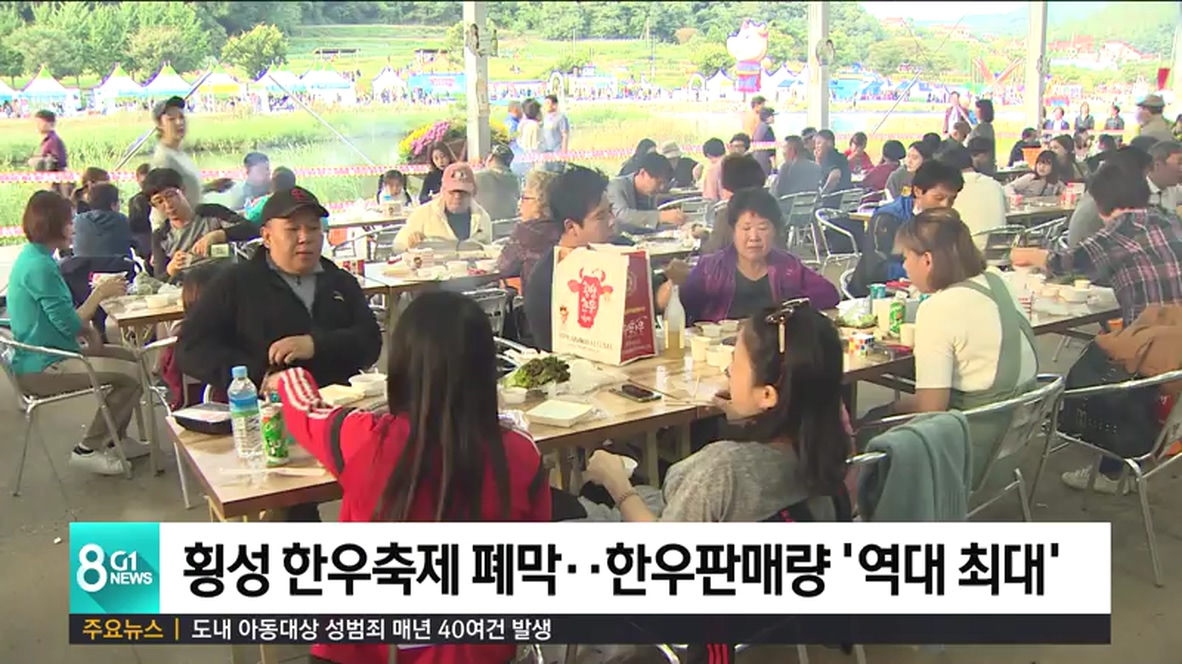 대한민국 대표 먹거리 축제인 횡성 한우축제가 닷새간의 일정을 성황리에 마치고 막을 내린 가운데 한우 판매량이 역대 최대치를 기록한 것으로 나타났습니다.