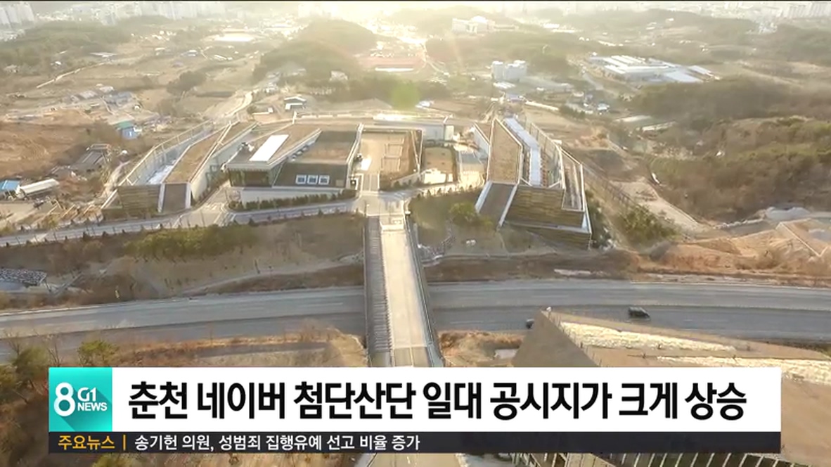 네이버의 도시첨단산업단지가 위치한 춘천시 동면 일대의 개별 공시지가가 큰 폭으로 상승한 것으로 나타났습니다.