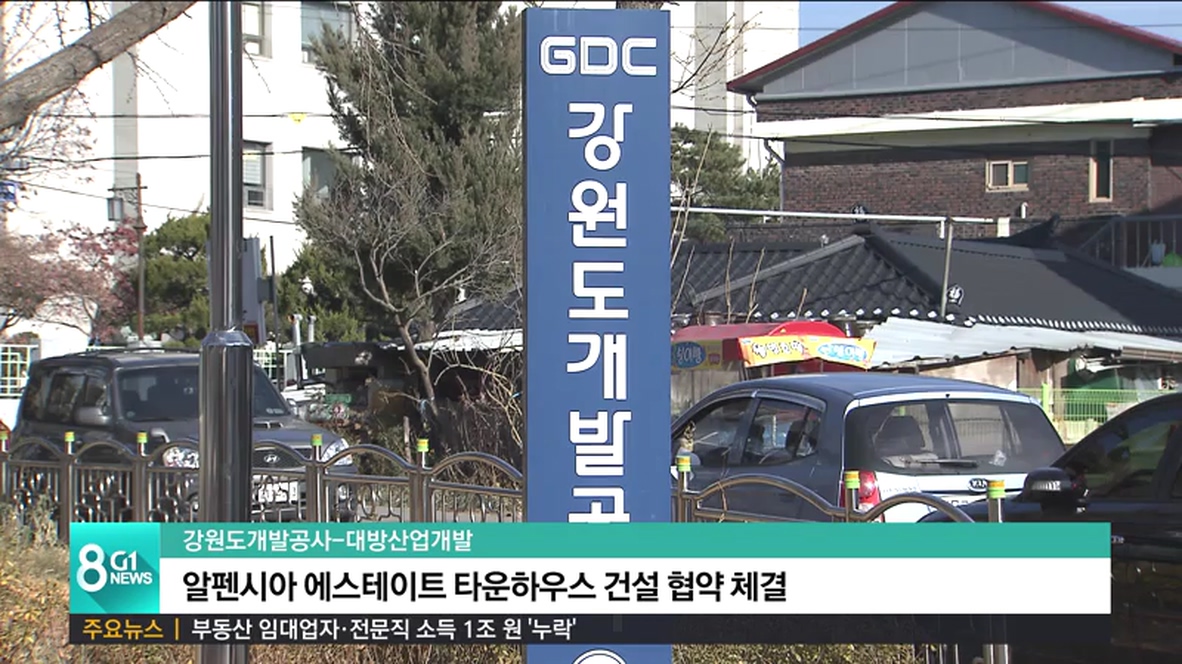 강원도개발공사가 대방산업개발과 알펜시아 에스테이트 타운하우스 건설을 위한 공동시행 사업 협약을 체결했습니다.