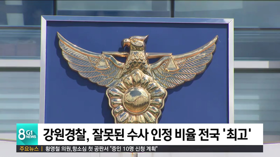 강원경찰이 잘못된 수사라고 인정한 비율이 전국에서 가장 높은 것으로 나타났습니다.