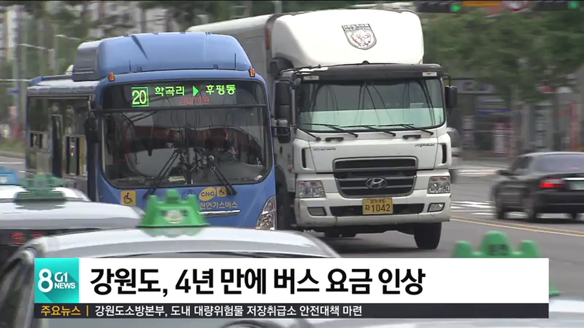 전국의 버스와 택시, 통행료 등 공공요금이 줄줄이 인상되면서, 강원도의 버스 요금도 인상됩니다.