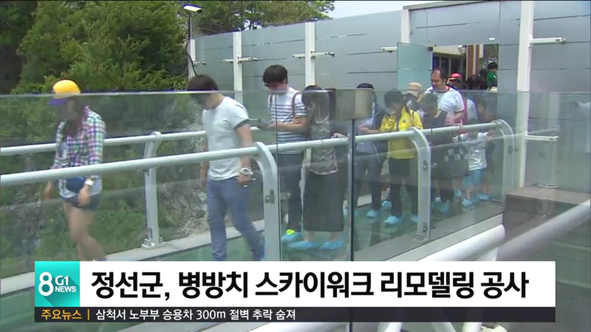 정선군은 연말까지 1억 9천만원을 투입해, 병방치 스카이워크의 바닥 강화유리와 난간 등에 대한 교체 작업을 벌인다고 밝혔습니다.