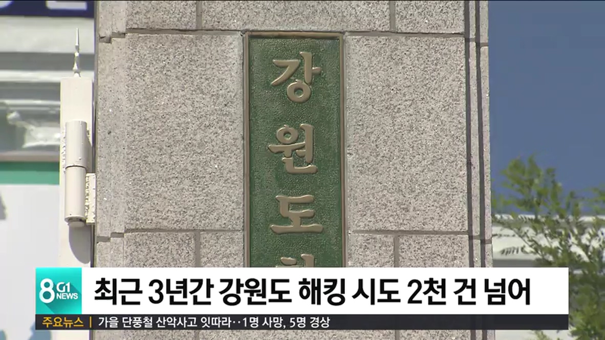 최근 3년간 강원도에 대한 정보유출 등 해킹 시도가 2천 건이 넘는 것으로 조사됐습니다.