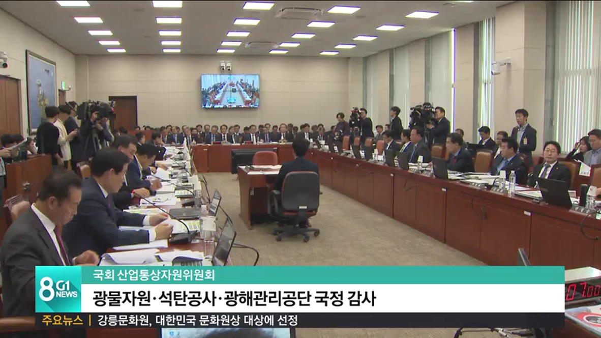 국회 산업통상자원중소벤처기업위원회가 한국광물자원공사와 대한석탄공사, 한국광해관리공단 등 원주 혁신도시 이전 공공기관과 강원랜드 등에 대한 국정 감사를 진행했습니다.