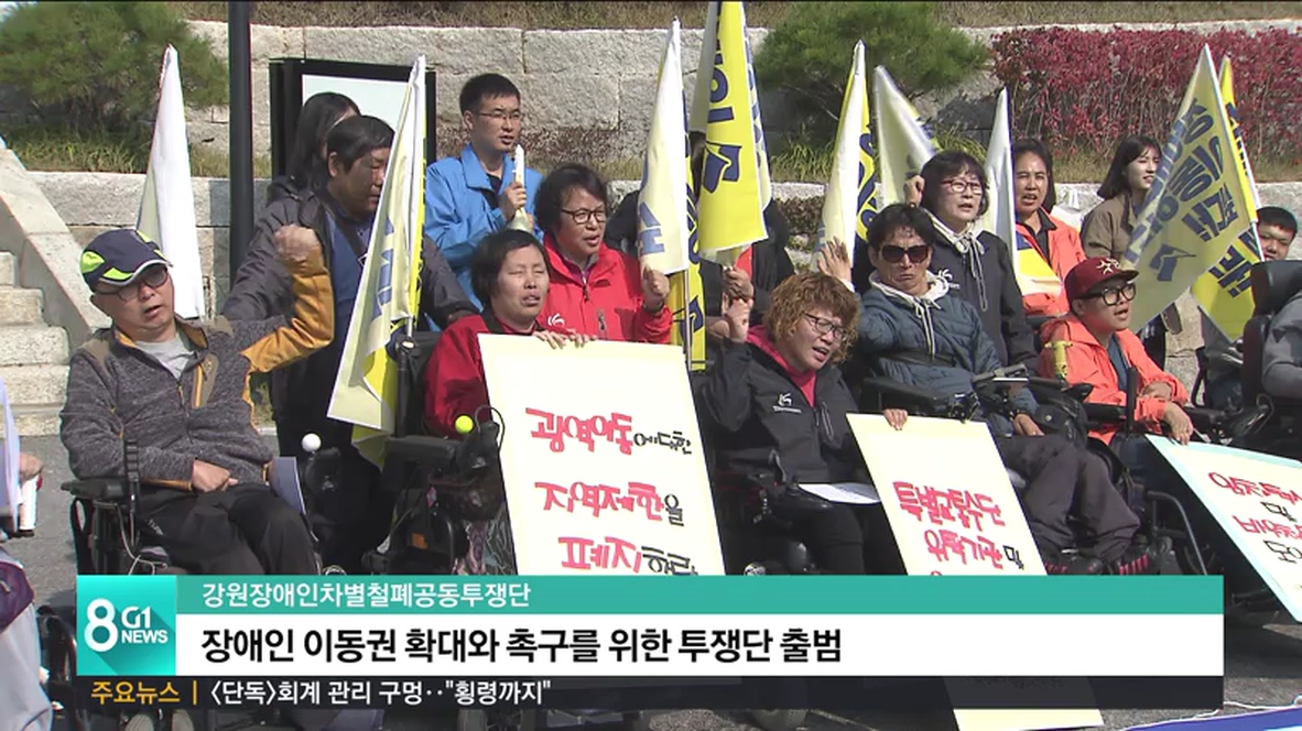 강원장애인차별철폐공동투쟁단은 오늘(16일), 강원도청 앞에서 '강원도 장애인 이동권 확대와 촉구를 위한 순회투쟁단' 출범 기자회견을 열었습니다.