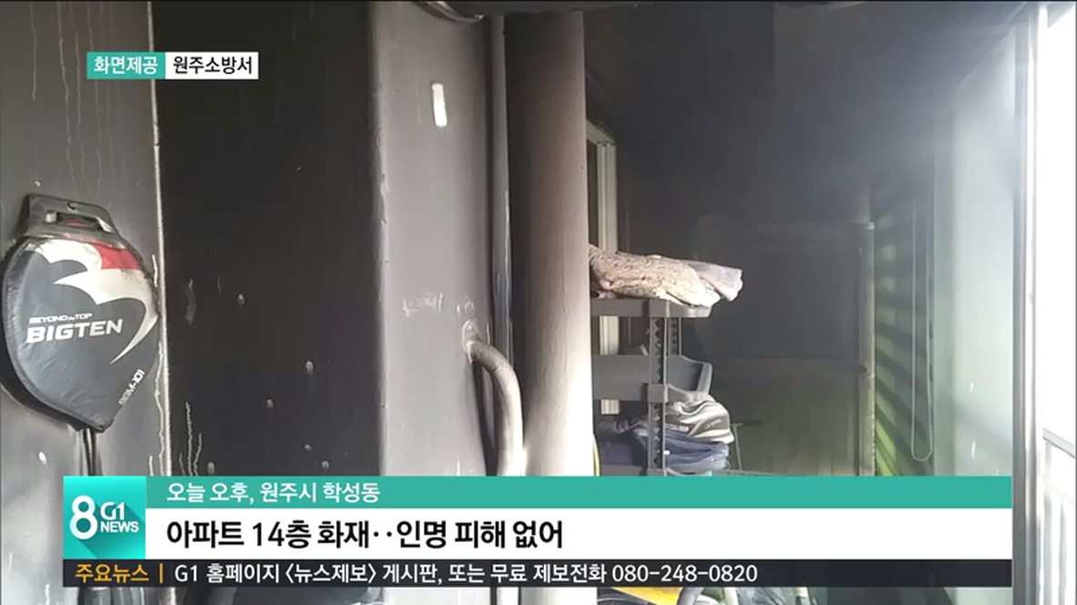 오늘 오후 4시 40분쯤, 원주시 학성동의 한 아파트 14층에서 불이 나, 10여분 만에 꺼졌습니다.