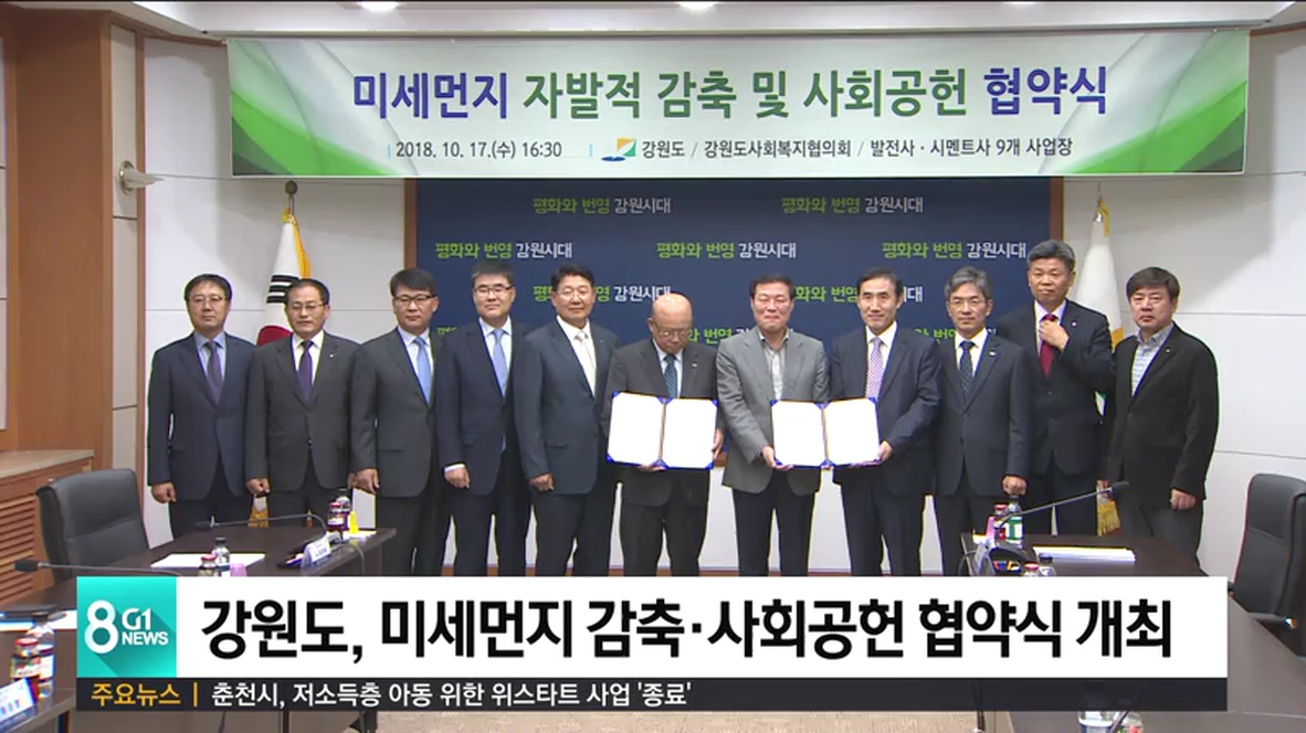 강원도는 오늘(17일) 청정한 대기환경 조성을 위해, '미세먼지 자발적 감축과 사회공헌 협약식'을 열었습니다.