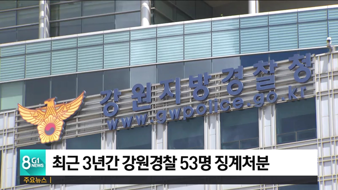 강원지방경찰청이 국회 행정안전위원회 더불어민주당 홍익표 의원에게 제출한 자료를 보면, 지난 2016년부터 올 8월까지 3년 동안 도내 경찰관 53명이 각종 비위로 징계처분을 받았습니다.
