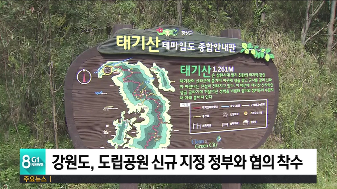 강원도는 도립공원 신규 지정을 위해 일선 시군의 의견 취합과 연구조사 용역 등을 거쳐 횡성 태기산과 정선 상원사 일원을 최종 후보지로 확정하고, 정부 9개 관련 부처와 협의 절차에 들어간다고 밝혔습니다.