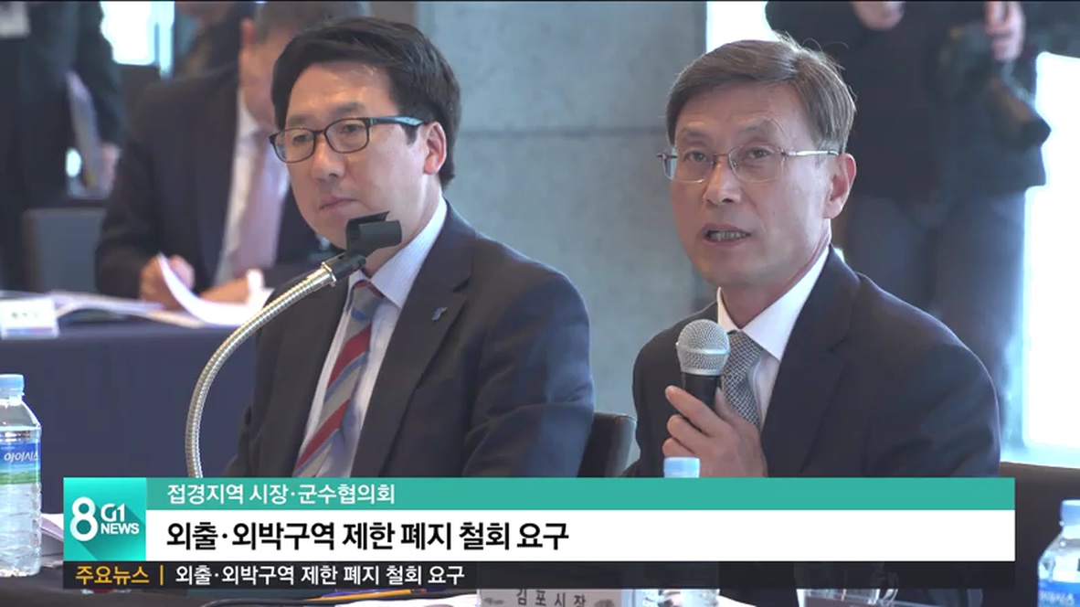 강원도와 경기도 10개 시장, 군수로 구성된 접경지역 시장.군수협의회는 오늘 경기도 강화군에서 열린 하반기 정기회의에서 군인 외출.외박구역 제한 폐지 문제와 관련해, 국방부가 약속한 대로 연내에 민.관.군 협의를 조속히 진행할 것을 요구했습니다.