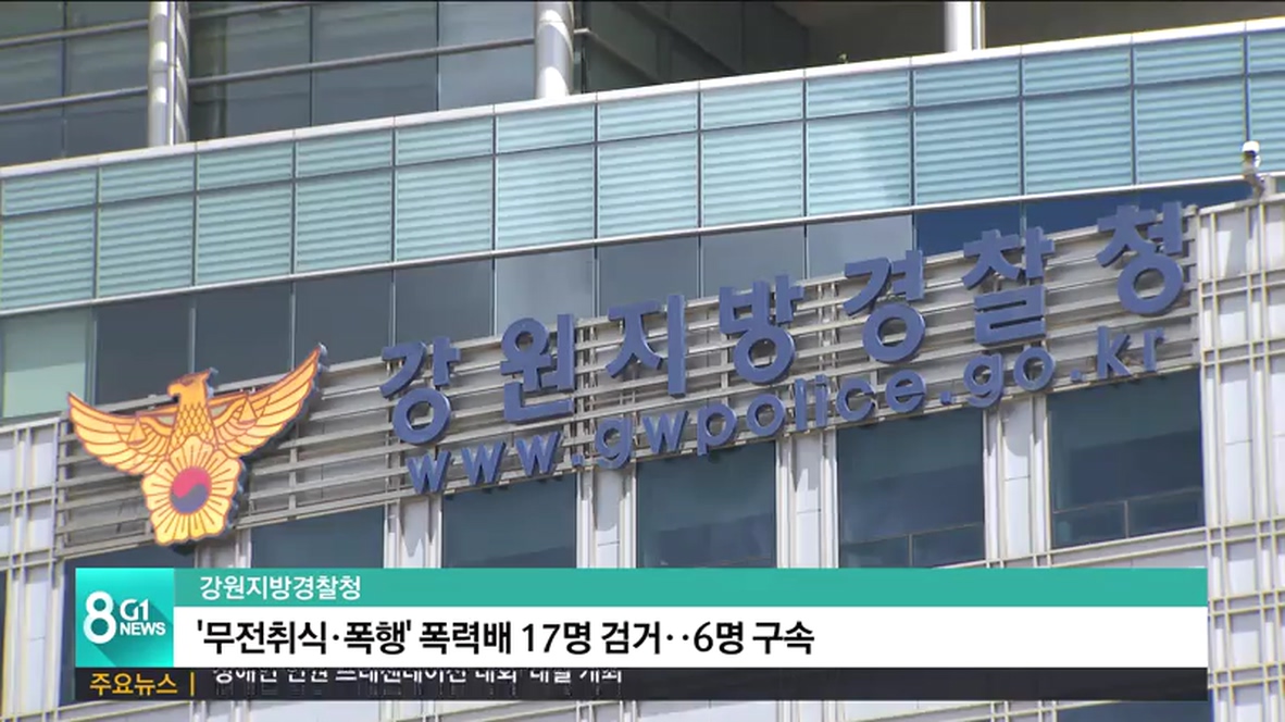 강원지방경찰청은 이달 초부터 서민 생활에 해를 끼치는 폭력배를 특별 단속해 오늘까지 17명을 검거하고, 이 중 6명을 구속했다고 밝혔습니다.