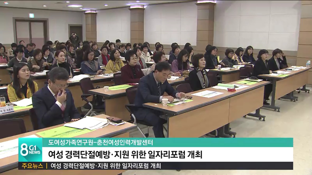 강원도여성가족연구원과 춘천여성인력개발센터는 오늘(26일) 도여성가족연구원에서 '경력단절을 넘어 경력이음으로'라는 주제로 여성일자리 정책포럼을 개최했습니다.