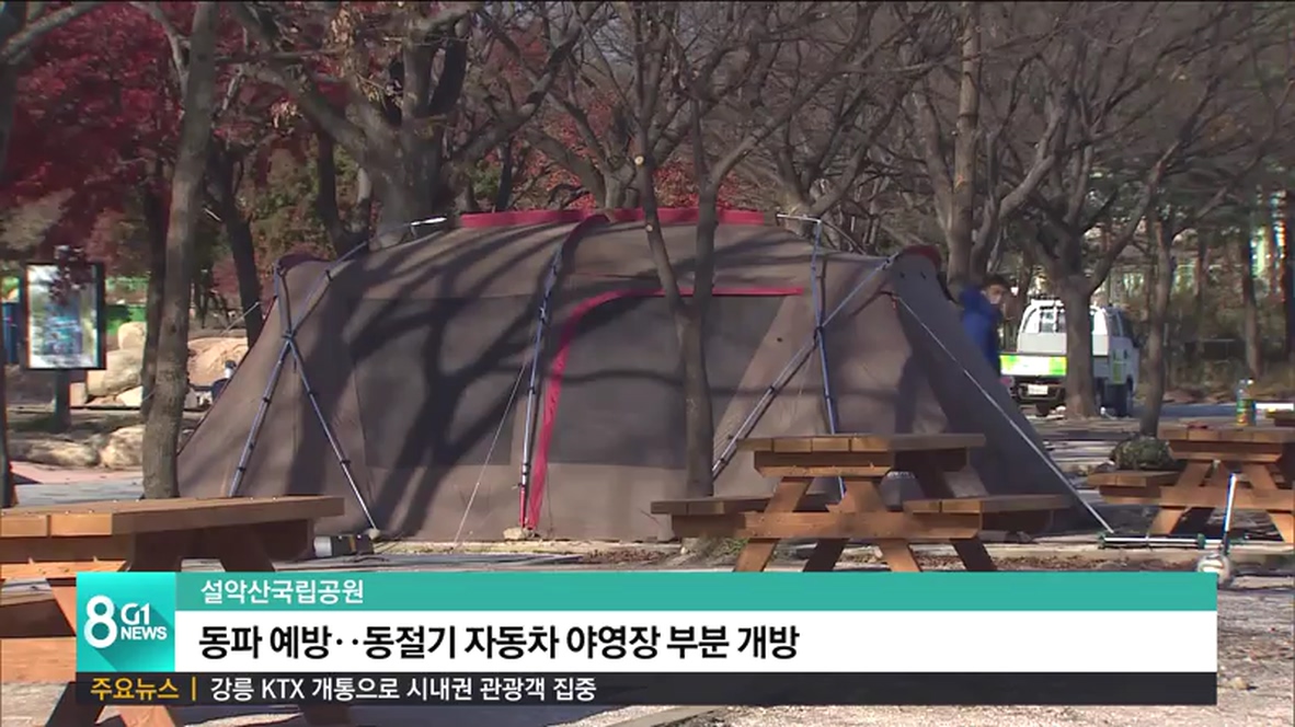 국립공원관리공단 설악산 국립공원사무소는 겨울철 시설 동파 방지를 위해 설악동 자동차 야영장을 부분 개방합니다.