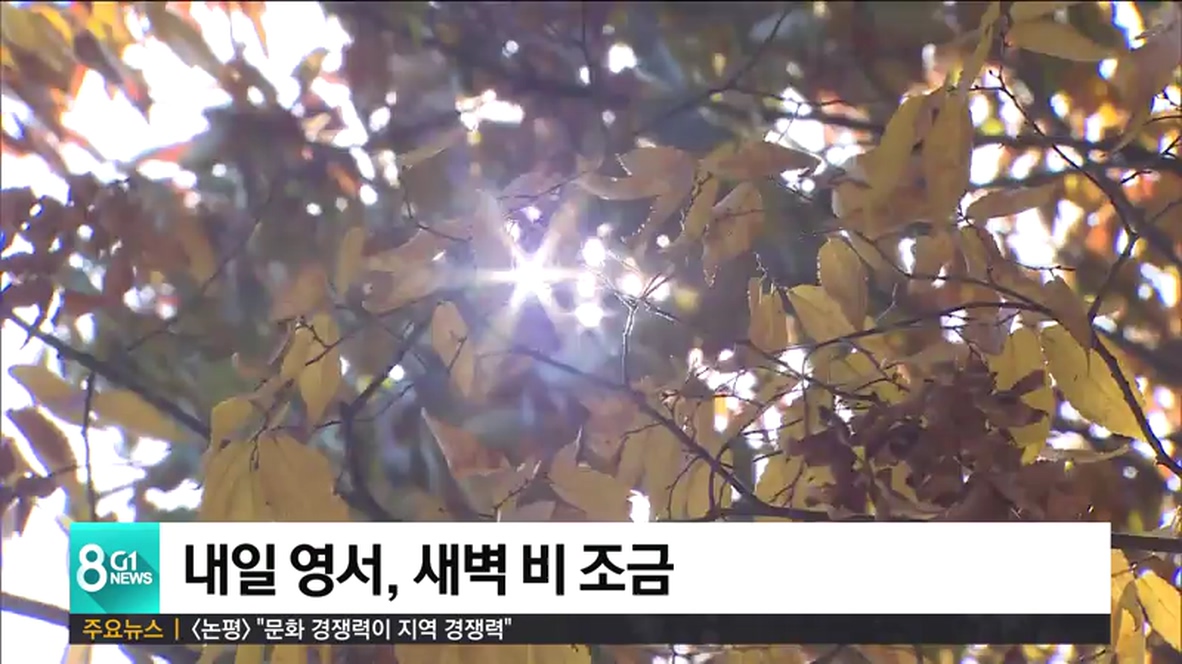 내일 강원 영서지역은 새벽 한때 비가 내리는 곳이 있겠고, 영동은 대체로 맑겠습니다.