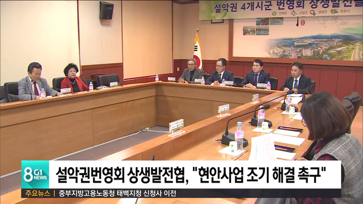 설악권번영회 상생발전협의회가 오늘(29일) 속초시청 디지털상황실에서 간담회를 열고, 4개 시.군별 주요 현안사업의 조속한 추진을 정부에 촉구했습니다.