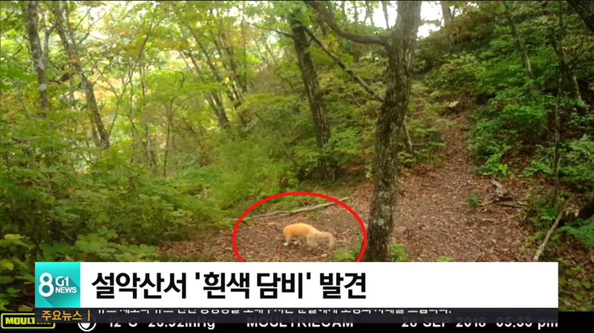 국립공원관리공단 설악산국립공원사무소는 야생동물 모니터링을 위해 설치한 무인센서카메라에 알비노 담비가 2마리의 담비와 함께 무리를 지어 이동하는 모습이 포착됐다고 밝혔습니다.