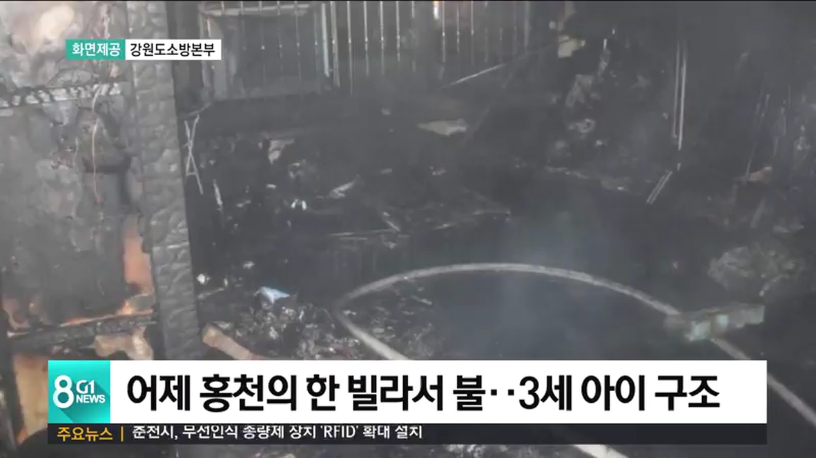 홍천군의 한 빌라에서 불이 나 건물 안에 있던 3살 아이가 의식을 잃었지만, 출동한 소방관들의 신속한 구조로 상태가 호전됐습니다.