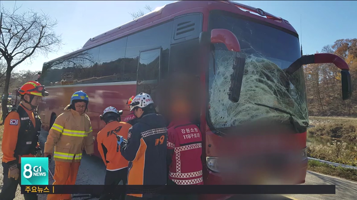 이 사고로 버스에 타고 있던 77살 반모씨 등 2명이 크게 다쳐 원주 세브란스기독병원으로 옮겨져 치료를 받고 있고, 37명은 경상을 입었습니다.
