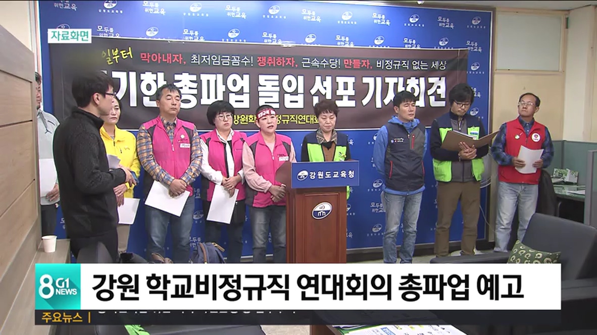 강원학교 비정규직 연대회의가 성명을 내고 학교 비정규직 차별이 해소되지 않으면 총파업에 나서겠다고 밝혔습니다.