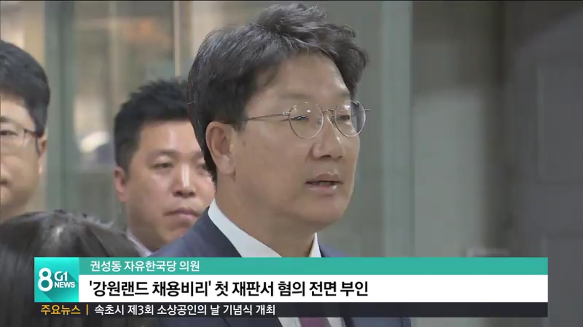 강원랜드 채용과정에서 영향력을 행사한 혐의로 기소된 자유한국당 권성동 의원에 대한 첫 재판이 열렸습니다.