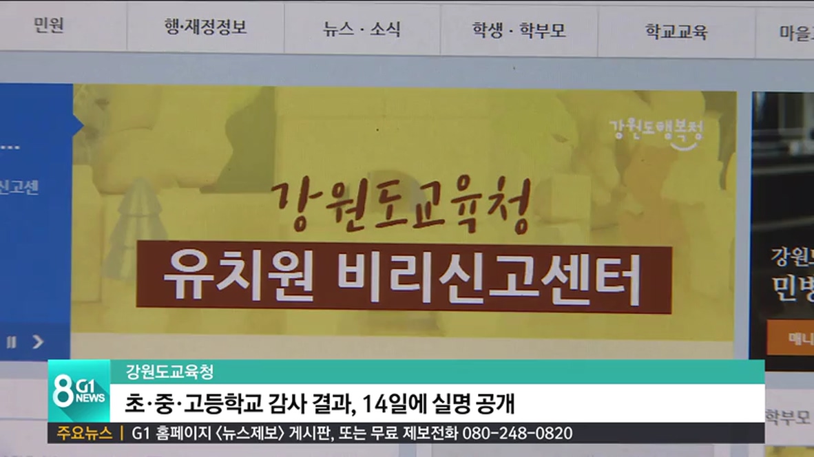 강원도교육청은 교육청이 실시한 초.중.고 감사 결과를 지난 2일부터 홈페이지에 게시하고 있고, 각 지역교육청이 실시한 감사 내용은 오는 14일쯤 공개할 예정이라고 밝혔습니다.