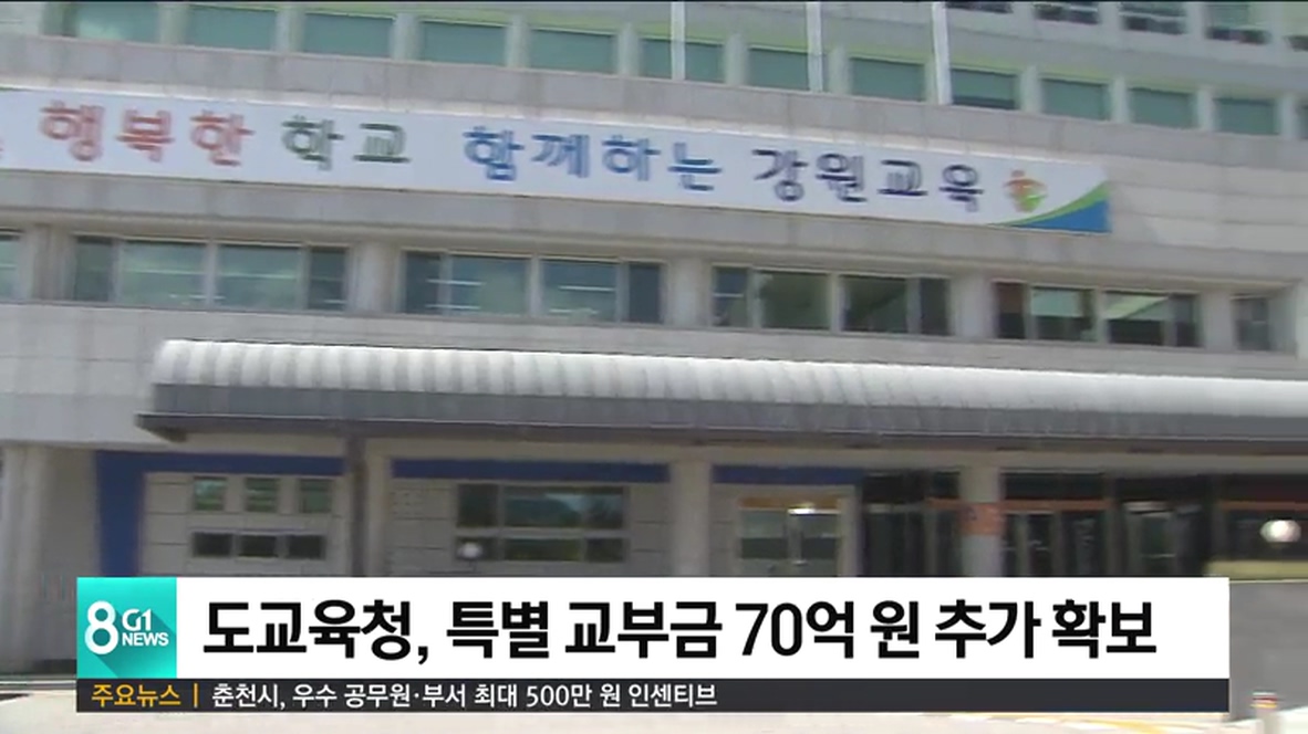 강원도교육청이 올해 하반기에 교육부 특별교부금 70억5천만원을 추가 확보했다고 밝혔습니다.