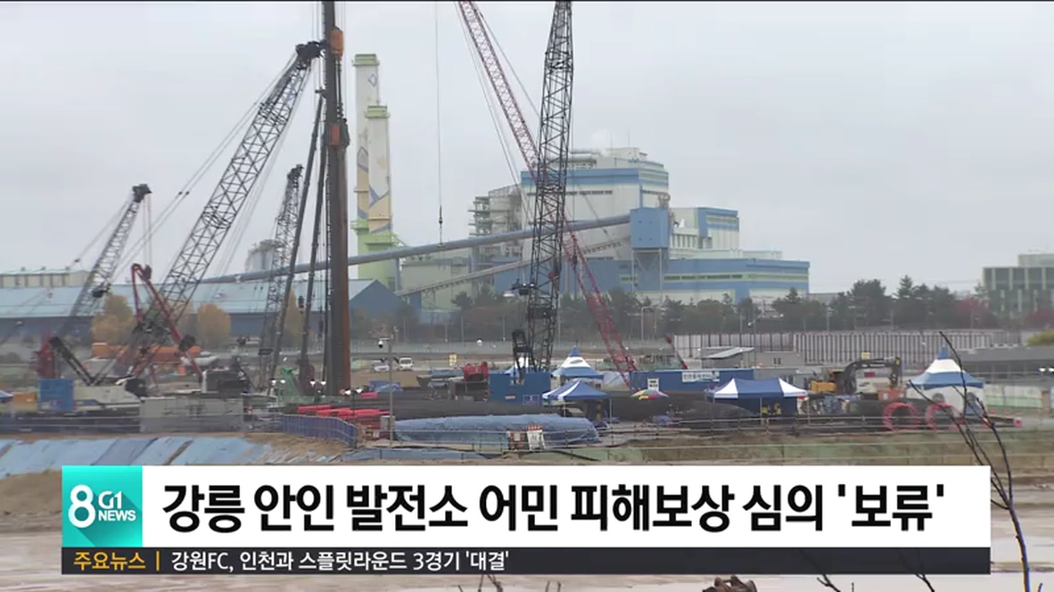 강릉 안인 화력발전소와 지역 어촌계에 따르면, 어제(8일) 열린 중앙토지수용위원회 심의 결과, 발전소와 어민 측의 의견을 좀 더 수렴해야 한다는 취지로, 발전소가 신청한 어민 피해 보상안에 대한 심의 결정이 보류 됐습니다.