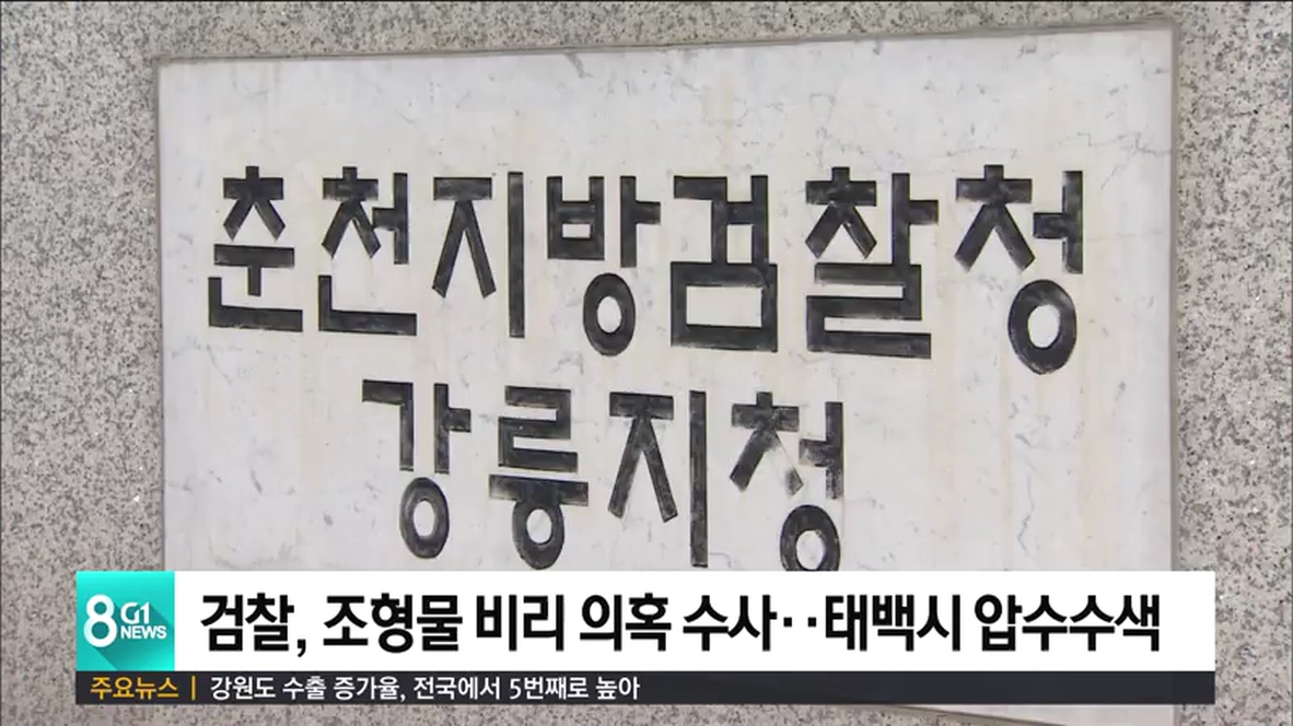 검찰은 지난 7월 강릉역 조형물 입찰 비리를 저질러 구속 수감 중인 조형물 작가 왕모씨가 태백시의 조형물 선정에도 관여했는지와, 입찰 과정에서의 불법 행위 등이 있었는지에 대해 수사를 벌이고 있습니다.