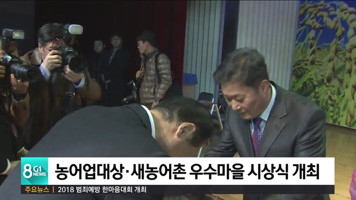 도내 25개 농업인단체와 농업인 3천여 명이 참석한 이번 시상식에서는, 작물경영과 친환경농업 등 7개 부문 우수 농어업인과 농어촌건설운동 우수마을 25곳에 대한 시상이 진행됐습니다.