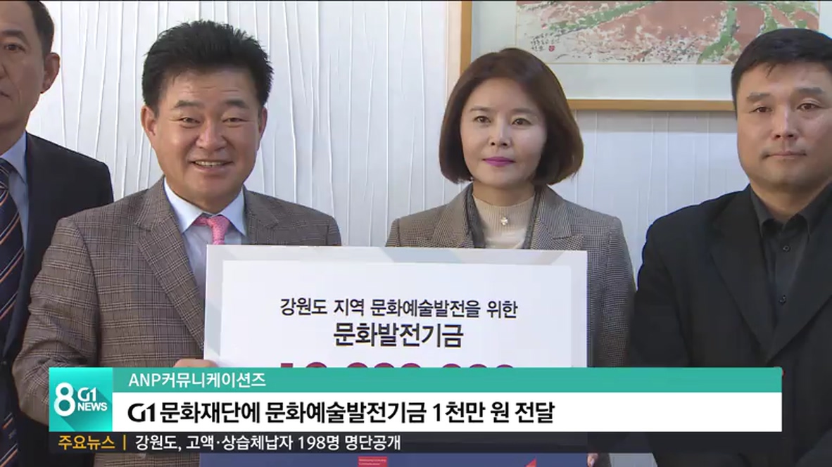 강원도 문화예술발전에 조금이나마 기여하고자 G1문화재단에 문화발전기금을 전달하게 됐다고 밝혔습니다.
