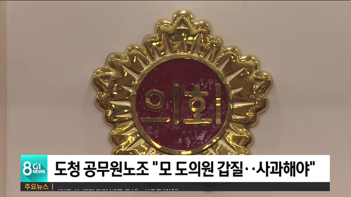 도청 공무원노조는 지난달 18일 도의회 예산결산특별위원회에서 A 의원이 강원도 건설교통국장에게 질의하는 과정에 막말과 윽박지르기, 턱 괴기 등 도정을 무시한 갑질 행태를 보였다고 주장했습니다.
