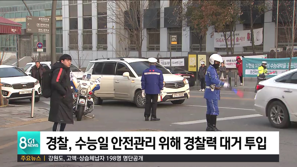 강원지방경찰청은 시험장별로 무장경찰 2명을 배치하는 것을 비롯해, 교통경찰 258명과 순찰차 98대 등을 동원해, 수능 교통관리와 출입자 통제 업무를 지원할 예정입니다.